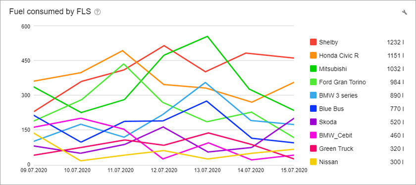Nástroje pro přehledné zobrazení statistik ve formě grafů nebo tabulek. S jejich pomocí můžete kontrolovat a prezentovat nejdůležitější údaje o vaší flotile.
